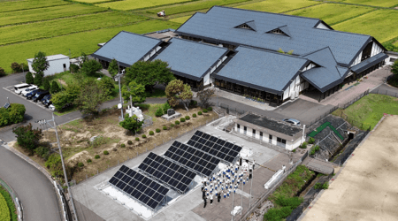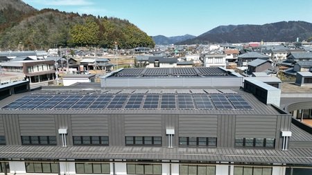 市役所の支所(今立総合支所)も入居する、東部地域の交流・防災拠点である「あいぱーく今立」では、令和7年4月から太陽光発電が本格稼働し、「ゼロカーボン・複合施設」となりました。