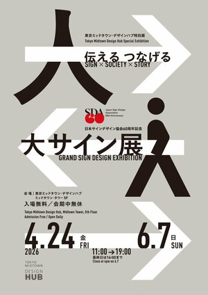 東京ミッドタウン・デザインハブ(構成機関:公益財団法人日本デザイン振興会、公益社団法人日本グラフィックデザイン協会、多摩美術大学 TUB)は、特別展「日本サインデザイン協会60周年記念 大サイン展 伝える つなげる Sign×Society×Story」を2026年4月24日(金)から6月7日(日)まで開催します。