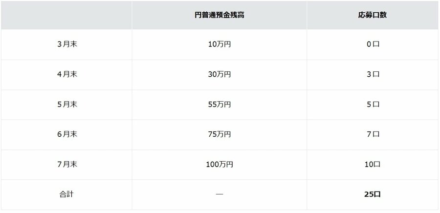 ※エントリーと円普通預金残高の達成の順序は問いません(2026年7月末にエントリーしたかたも2026年3月~2026年7月の各月の月末残高で口数判定を行います)
