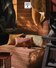 ポンペイの植物を描いたフレスコ画をリネンにプリントしたデザインです、時を経たような表現が庭園の雰囲気と、植物のやわらかな美しさを映し出しています。