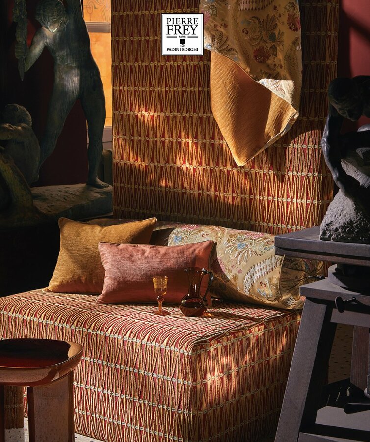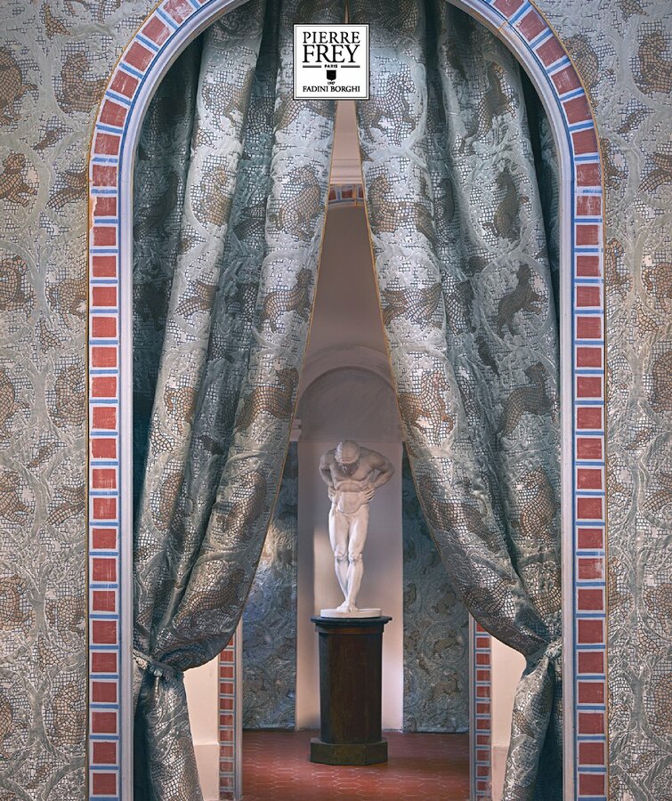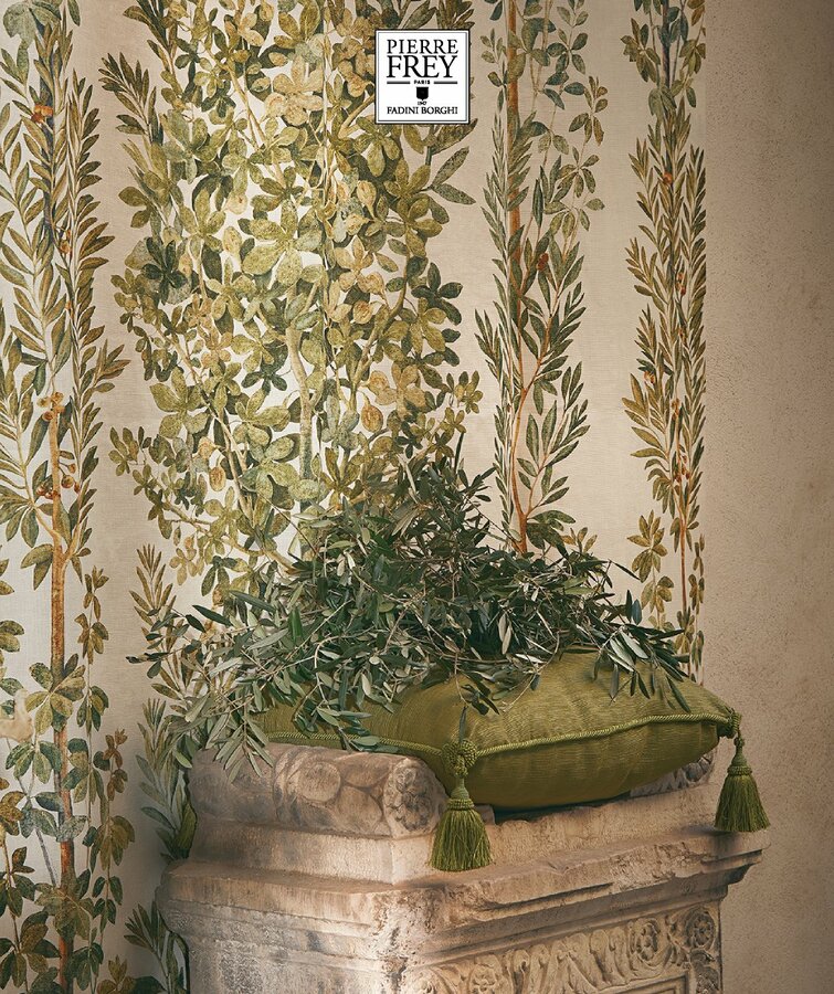 『VIA ANTICA(ヴィア アンティカ)』は、古代フレスコ画の豊かな色彩、ポンペイの庭園の繊細な表現、古代の祝祭を思わせる優雅な雰囲気のデザイン、そして格調高いベルベットの豊かな質感…これらの要素を横断的に取り込み、花柄やアラベスク、渦を描くような曲線模様が洗練された構成で展開されています。時を経た素材の表情や職人技の美しさを現代的に再解釈し、静かな存在感を持つ装飾空間を提案します。