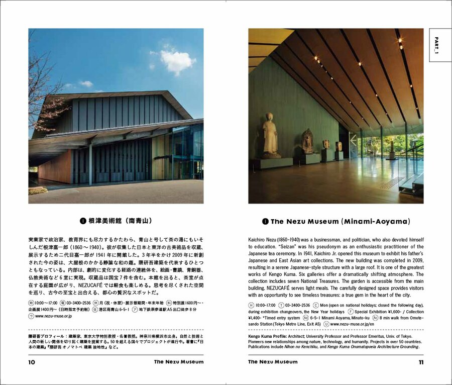 膨大な情報を詰め込むのではなく、“建築”というテーマに絞ることで、初めての人にも、建築好きにも、心地よい距離感で東京を案内します。ハンディサイズながら、掲載写真は大きめに配置し、解説テキストも簡潔でありながらも中身の濃い内容になっています。街を歩くときも、読むだけの時間でも、視覚的に楽しめるページデザインに仕上げました。本文は日本語・英語のバイリンガルでテキストを掲載しています。訪日外国人への案内役としてはもちろん、訪日観光客のみなさんには“東京を知る最初の一冊”としても手に取っていただいています。ガイドブックでありながら、お土産やギフトとしても選びやすい内容となっています。