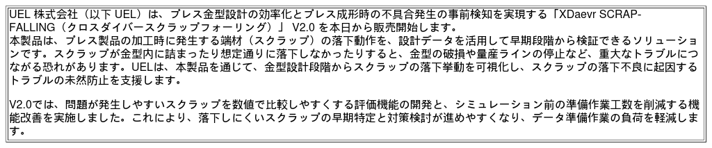 スクラップの落下不良への対応は、従来、現場の熟練作業者の経験や試行錯誤に依存するケースが多く、設計段階で十分に事前検証することが難しい課題でした。そこで、UELはこの課題を解決するために、設計者が設計段階からスクラップのさまざまな落下挙動を確認して、設計品質を改善できるように「XDaevr SCRAP-FALLING」を開発しました。