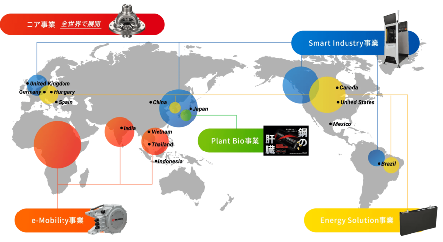 自動車部品製造を担うコア事業に加え、急速に事業拡大を進めているEnergy Solution事業やe-Mobility事業などの新規事業を紹介。テクノロジーを活用し社会課題の解決に挑む、エッセンシャルカンパニーを目指す取り組みを発信しています。