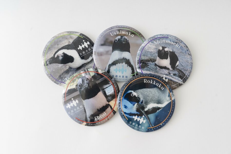 ペンギン缶バッジがガチャガチャで新登場します。バッジは、「ろっかく」「えびす」「しちじょう」「しんまち」「うしわか」の5種類です。ご購入いただくと1個につき50円が「SANCCOB」に寄付されます。この機会にぜひ、ご購入ください。