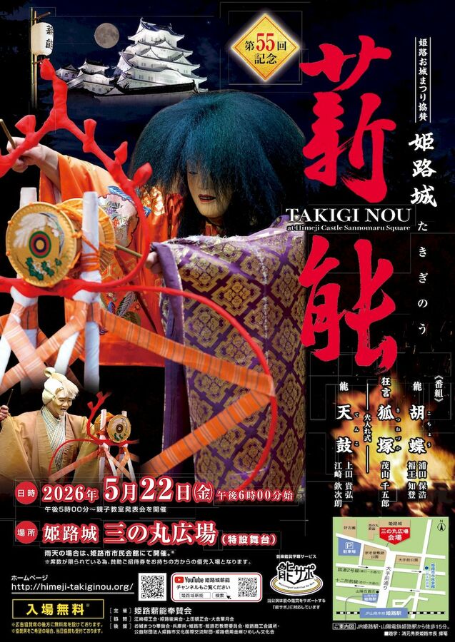 お問い合わせ先:姫路薪能奉賛会事務局(株式会社清交倶楽部内)TEL.079-281-6800