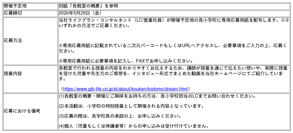 ジブラルタ生命保険株式会社(本社:東京都千代田区、代表取締役社長 兼 CEO:蕪木 広義)は、「ドリーム・スクール・キャラバン2026」に協賛します。