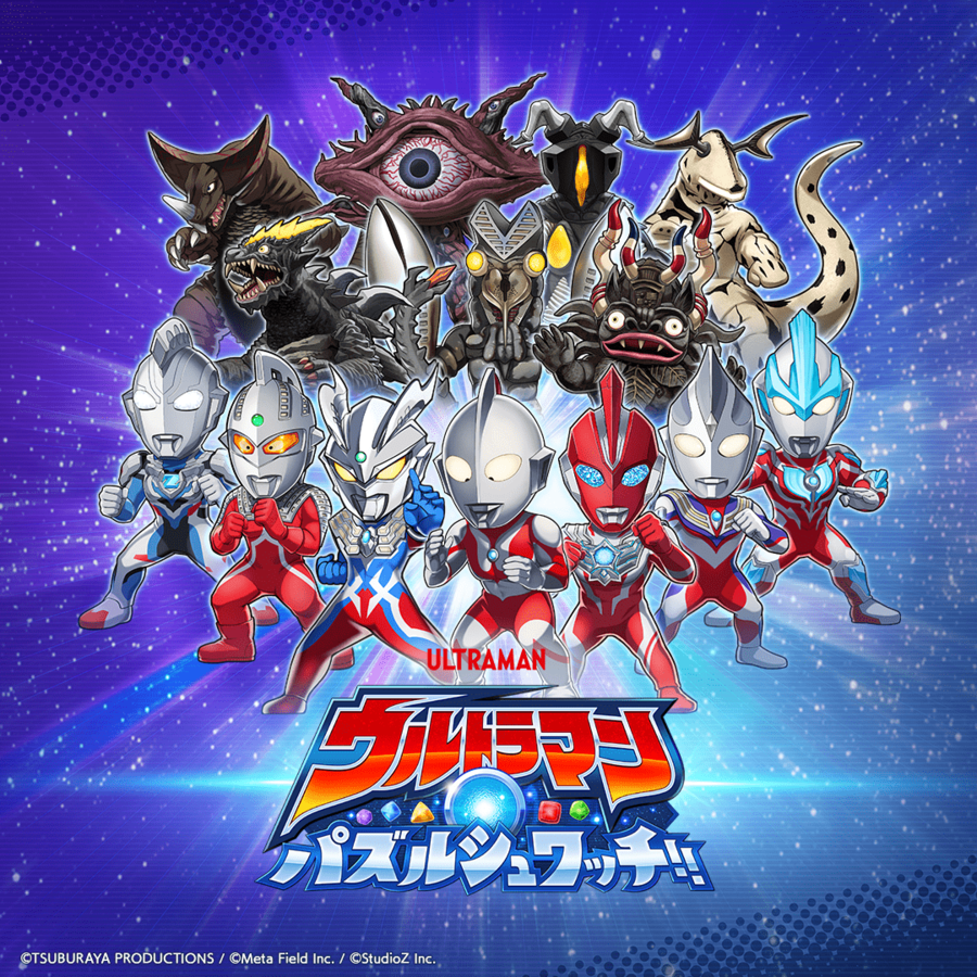 『ウルトラマン パズルシュワッチ!!』は、株式会社円谷プロダクション監修のもと展開している、ウルトラマンシリーズをモチーフとしたパズルゲームです。