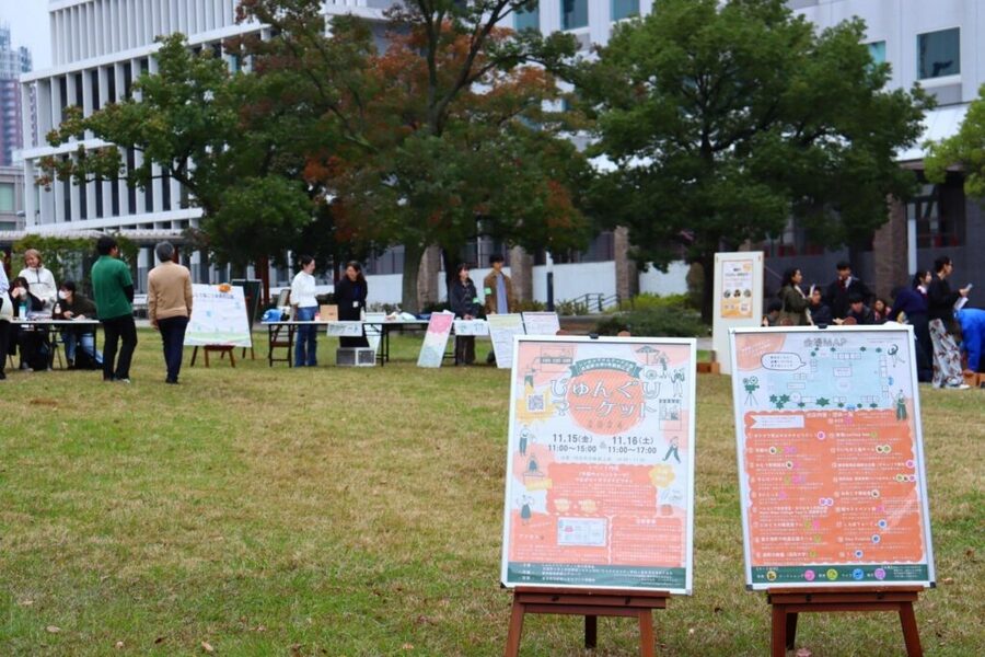 「じゅんぐりマーケット」は、地域の人々同士のつながりを生み出すことを目的に2023年から始まったイベントで、サステナビリティ学科(2023年度より環境システム学科から名称変更)の学生が主体となって企画・運営を行っています。今年で3回目の開催となり、今回も「つながり×サステナビリティ」をイベントテーマに、地域内外の人々や出展者、参加者の交流を促進し、人々がつながるきっかけになるようなイベントを目指します。武蔵野大学の学生が毎日利用するシンボルプロムナード公園をより多くの方にご利用いただき活性化するとともに、イベントを通して来場者の方に「サステナビリティ」を知ってもらう機会を創出していきます。