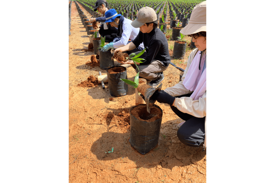 特に重要なのが、植林後のメンテナンスです。苗木は植えた後の管理によって生育が大きく左右されるため、過去に学生を派遣して植えたエリアの下草刈りや補修なども行い、森を“育てる”活動として継続的に取り組んでいます。