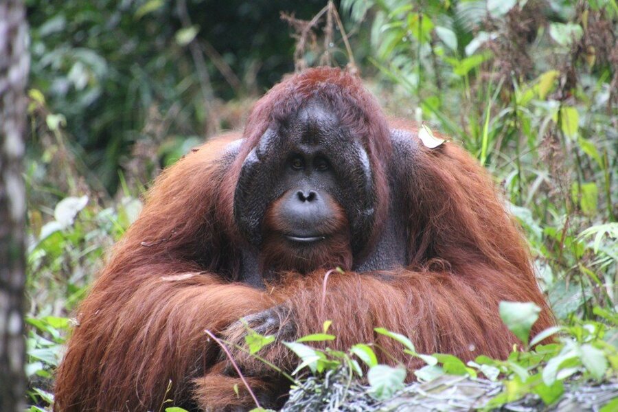 写真:ボルネオ島に生息するオランウータン
