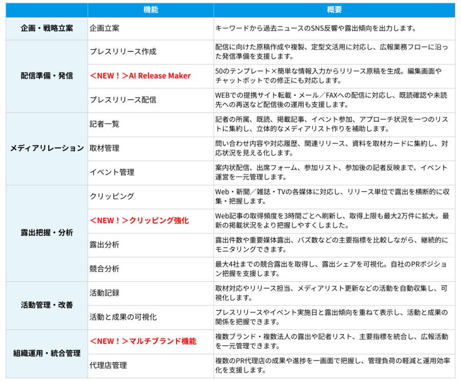 AIリリース作成支援やマルチブランド機能を拡充し、広報業務をより強力に支援