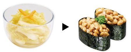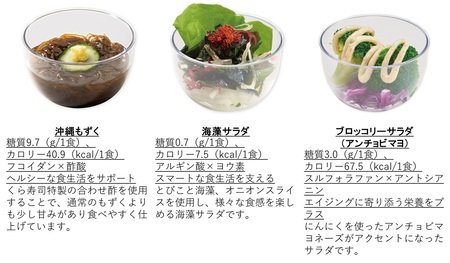 今回ご提供する商品ラインナップは、野菜や海藻、鶏肉などをメインに使用した全12品で、β-カロテンや食物繊維を含む「かぼちゃとさつまいものマリネ」、クエン酸を含むゆずを使用した「ゆず白菜」、海藻に含まれるフコイダンを手軽に摂取できる「沖縄もずく」、発酵由来の酢酸を含む「食前酢 りんご」、大豆イソフラボンを含む「豆乳ぷりん(いちごソース)」など、日常の食事で不足しがちな栄養素を補えるメニューをご用意しました。さらに、シャリの代わりに大根やにんじんを使用した「シャリ野菜」もリニューアルして復活。野菜を手軽に取り入れながら寿司を楽しめるメニューとなっています。そして、本シリーズの商品は回転レーンからもご提供します。注文品よりもお得な価格で、気軽に流れてくる商品を選んで取る楽しさも魅力です。