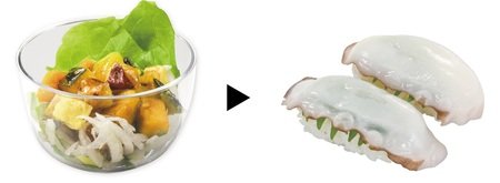 このようなニーズを踏まえつつ、豊富なメニューをワンプレートで少量ずつ楽しめるという回転寿司ならではの利点も生かし、手軽に野菜を中心としたメニューを楽しんでいただける「健康食前の一皿シリーズ」を開発しました。少量サイズかつリーズナブルな価格でご提供することで、普段あまり食べない食材を使用したメニューでも気軽に試しやすく、食前の一皿として、不足しがちな栄養素を手軽にプラスできるメニューとなっています。