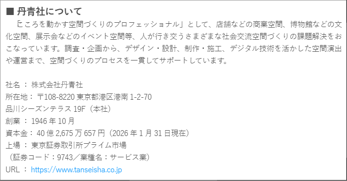 株式会社丹青社 広報室 担当:石綿、寺戸