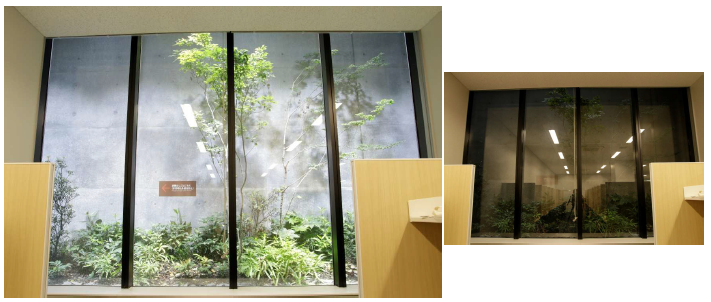 光の⾊味が10,000K(ケルビン)の天空光模擬照明、5,000K の直射光模擬照明の2 種類を組み合わせ、これらを地下空間の植物などに向けて照射することで、まるで地上のように⾃然な光の分布や影を再現します。地下階であっても太陽光を感じさせる空間を演出し、閉鎖感の緩和と快適性の向上を図っています。