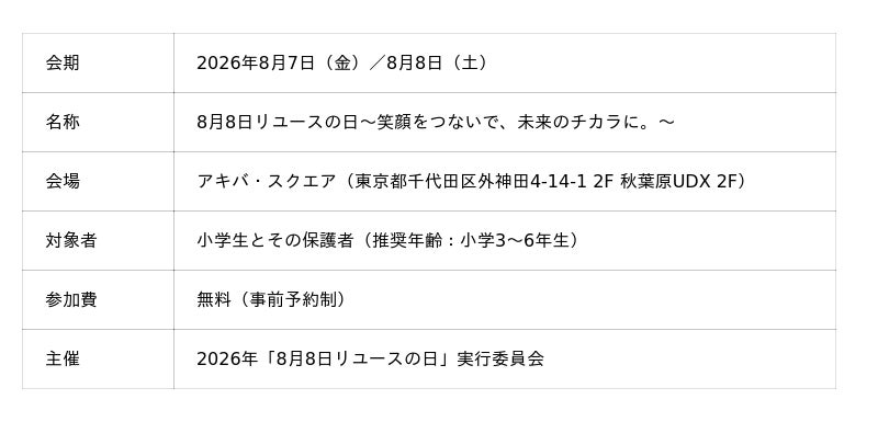 ■リユースの認識を深めるきっかけを。2026年「8月8日リユースの日」の取り組み概要