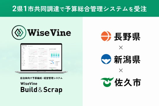 今回の長野県、新潟県、および佐久市の3団体による先進的な共同調達でのご導入に、心より感謝申し上げます。 また、当社システムにとって初めての「市」での導入となる佐久市様のご採用は、都道府県レベルにとどまらず、市区町村を含むあらゆる規模の自治体における予算関連業務の効率化と高度化に貢献できるものと考えております。 これまで当社を支えてくださった自治体の皆様に感謝するとともに、引き続き日本全国の持続可能な行政経営と予算編成改革に貢献して参ります。■ 株式会社WiseVineについて