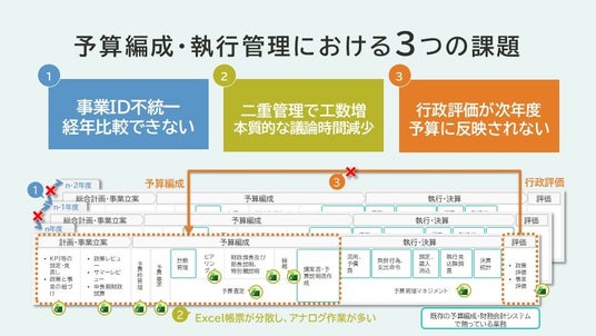 - 事業費データのID化が十分に行われておらず、各事業の経年推移を把握しづらい状況が、予算査定の障壁となっている
