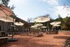 ファームレストランの屋外パラソル席では、愛犬と一緒にお食事をお楽しみいただけます。定番のジンギスカンをはじめ、「千本松牧場牛100%ちぎりハンバーグ」など牧場ならではのメニューをご用意しております。さらに、4月19日(日)までグランドオープン1周年を記念して、「栃木県産黒毛和牛サーロインセット(ライス・スープバー、サラダ付き):3,200円」をご用意。