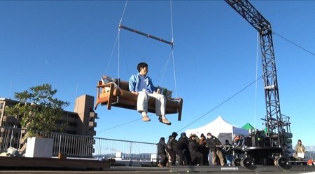 松山ケンイチさんが浮遊するソファーで自由に空を舞う!