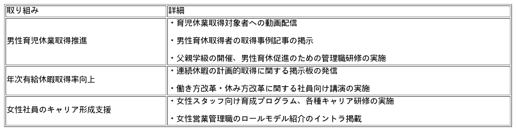 当社では、育児と仕事の両立を支援するため、以下の取組を進めてきました。
