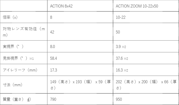 商品名:ニコン双眼鏡「ACTION 8x42」「ACTION ZOOM 10-22x50」