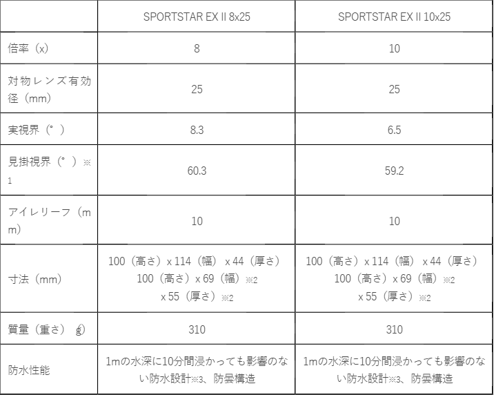 商品名:ニコン双眼鏡「SPORTSTAR EX II 8x25」「SPORTSTAR EX II 10x25」