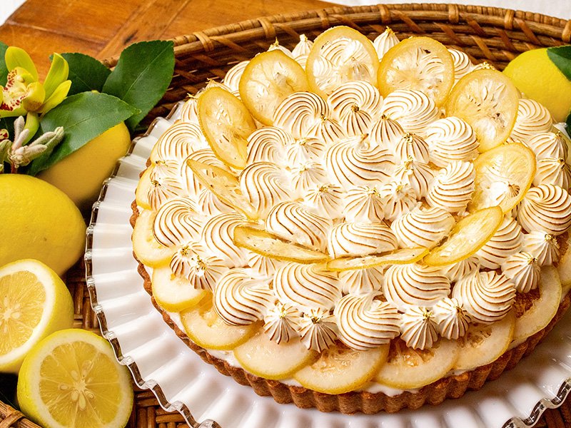 サクサクのパイにレモンジャム入りのカスタードクリームとレモンカードを重ね、たっぷりのクリームとレモンで仕上げたショートケーキタルトです。散りばめたレモンピールの香りと、レモンソースのさわやかな酸味が口いっぱいに広がります。