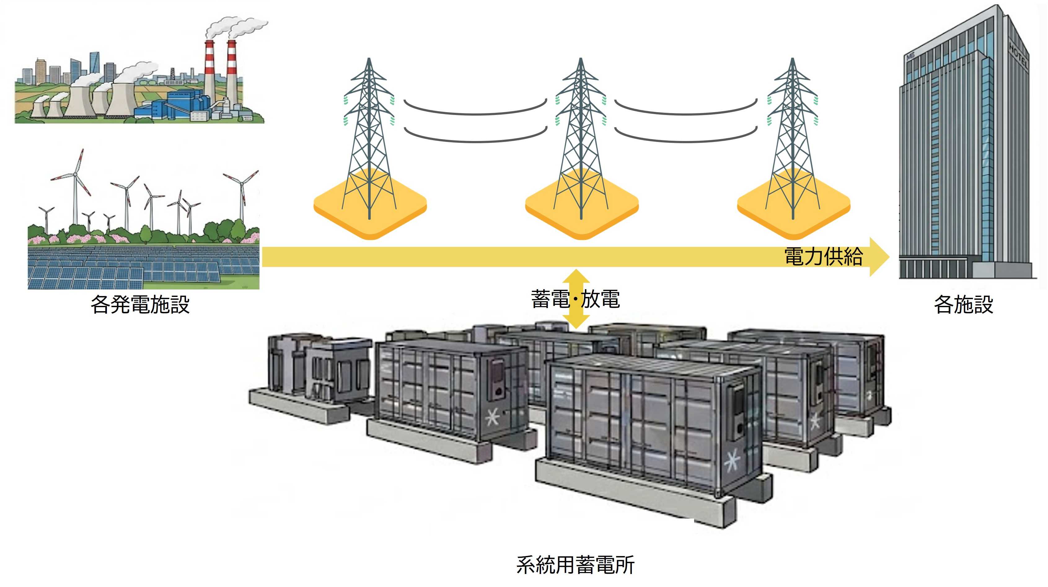 また、デジタル社会の進展により、一時的な電力不足が経済活動や都市機能を広範に停止させるリスクが顕在化しています。こうした背景を踏まえ、当社は、電力の「調整力」を担うインフラの一つである系統用蓄電所事業に取り組むことで、社会インフラの持続性に貢献していきたいと考えています。