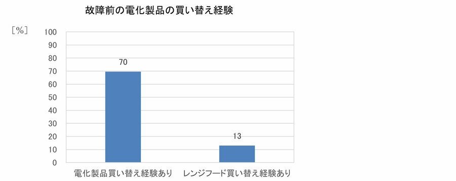 約70%の人が「故障前に電化製品を買い替えた」経験がある一方、レンジフードは約13%にとどまり、「レンジフードは故障したら買い替える」という考え方が主流であることが明らかになりました。
