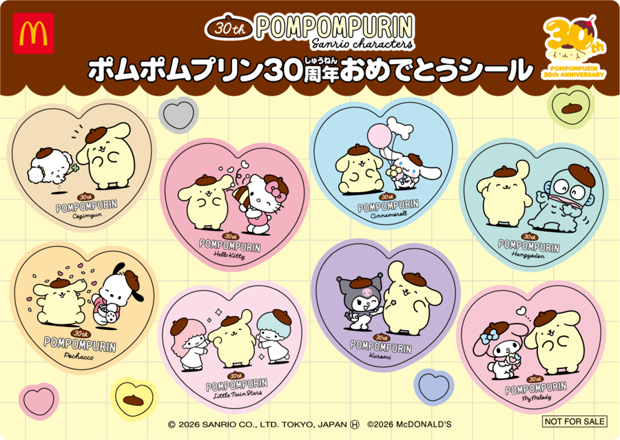 さらに、4月11日(⼟)・12日(日)の2日間は、ハッピーセット「トミカ」を1セットご購⼊につき「トミカスペシャルDVD2026」を、ハッピーセット「サンリオキャラクターズ」を1セットご購入につき「サンリオキャラクターズ×マクドナルドシール」をプレゼントいたします。4月25日(⼟)・26日(日)の2日間は、ハッピーセット「トミカ」を1セットご購⼊につき「トミカ プレイングシート&トヨタガズーレーシングGR GT3ポスター」を、ハッピーセット「サンリオキャラクターズ」を1セットご購入につき「ポムポムプリン30周年おめでとうシール」をプレゼントいたします。