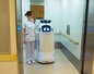 院内を「FORRO」が走行する様子 エレベータに人と相乗りする様子