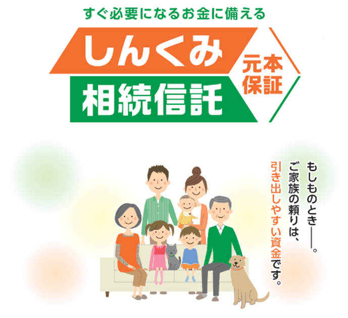 遺言代用信託とは、遺言書を作成いただくことなく、お客さまに相続が発生した際に、お預かりした金銭をあらかじめ指定いただいたご家族などの受取人にお渡しする商品です。
