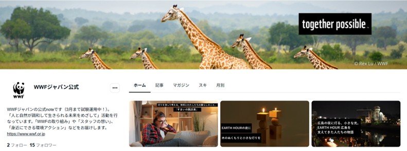 また、今回のアースアワーでは、noteの試験運用を実施。「WWFの取り組み」や「スタッフの想い」、「身近にできる環境アクション」などのストーリーを発信しました。