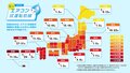 本前線に記載の予想日は、全国の各地域の過去5年間において、各年の最高気温が25℃に達した最初の日を調査し、それらを平均した日としています。