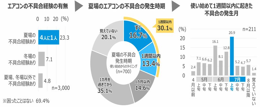 夏場のエアコン不具合の経験者は4人に1人