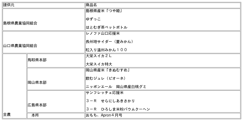 開催地の山口県をはじめとした中国地区各県の食材を贈呈