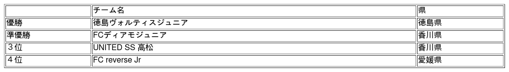 2日間にわたり24試合の熱戦が繰り広げられ、徳島ヴォルティスジュニア(徳島県)が優勝し四国地区の王者に輝きました。徳島ヴォルティスジュニアは5月3日~5日に日産スタジアムで開催される決勝大会へ出場し、小学生日本一を目指します。