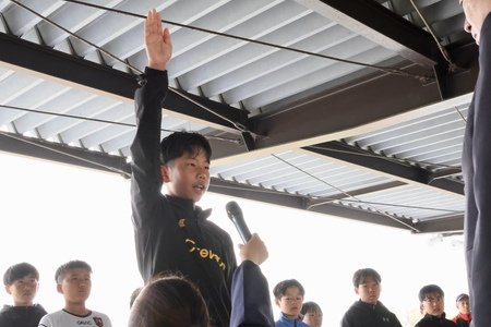 4月4日(土)の開会式では、FC reverse Jrの田中夢煌選手が「感謝の気持ちを忘れず、最後まで戦うことを誓います」と全選手を代表して選手宣誓しました。また、全農愛媛県本部 県本部長の武田孝二が「スポーツをする上で食べる事はとても重要です。新鮮な国産農畜産物をしっかり食べて丈夫な体をつくってください」とあいさつしました。大会初日は全12試合が行われ、決勝トーナメント進出に向けた熱戦が展開されました。