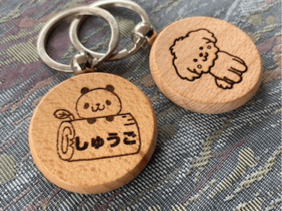 (左から)しあわせカラー(リード、ハーネス)、愛木楽社(うちの子お名前キーホルダー)、kururii(柴犬雑貨)、お菓子工房エータロー(スイーツ)、マルシェ近くのドッグラン春のフォットスポット