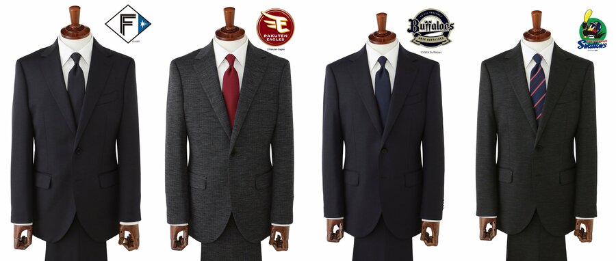 青山商事株式会社(本社:広島県福山市/代表取締役社長:遠藤 泰三)は、オフィシャルスーツサプライヤーとして提供しているプロ野球4球団(北海道日本ハムファイターズ、東北楽天ゴールデンイーグルス、オリックス・バファローズ、東京ヤクルトスワローズ)の公式スーツをフルモデルチェンジいたします。これを記念し、監督・コーチ・選手が遠征や公式行事で実際に着用するスーツと同素材・同型の「レプリカモデル」を、4月7日(火)より各球団の本拠地を中心とした「洋服の青山」限定店舗および公式オンラインストアにて数量限定で発売します。
