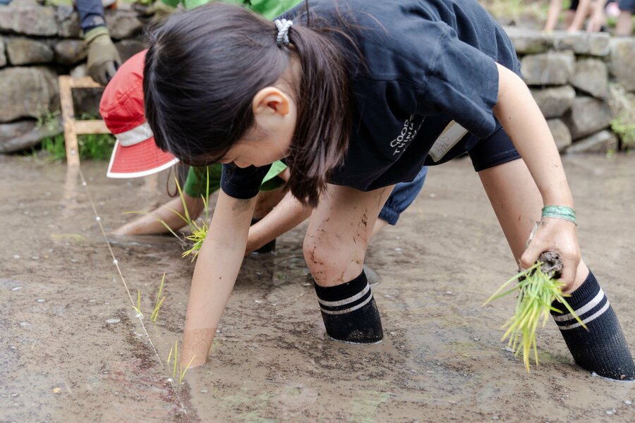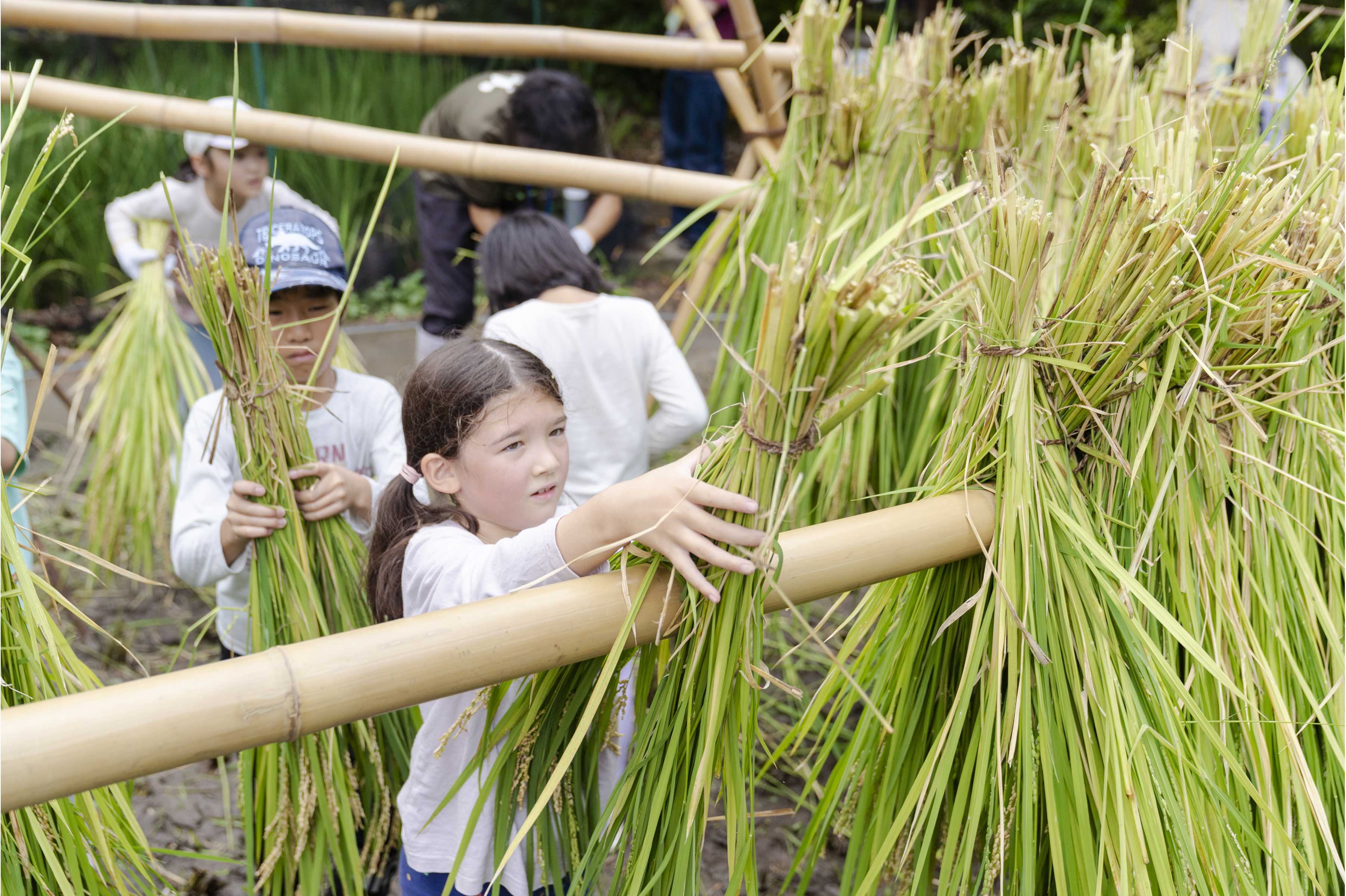 当プログラムは、2012年の開館当初から続く体験プログラムで、里山の原風景を再現した「京の里山」エリアにて、お米づくりを春から秋にかけて実施します。飼育スタッフとともに、昔ながらの手法で田植え・稲刈り・脱穀・精米・しめ縄づくりを体験します。