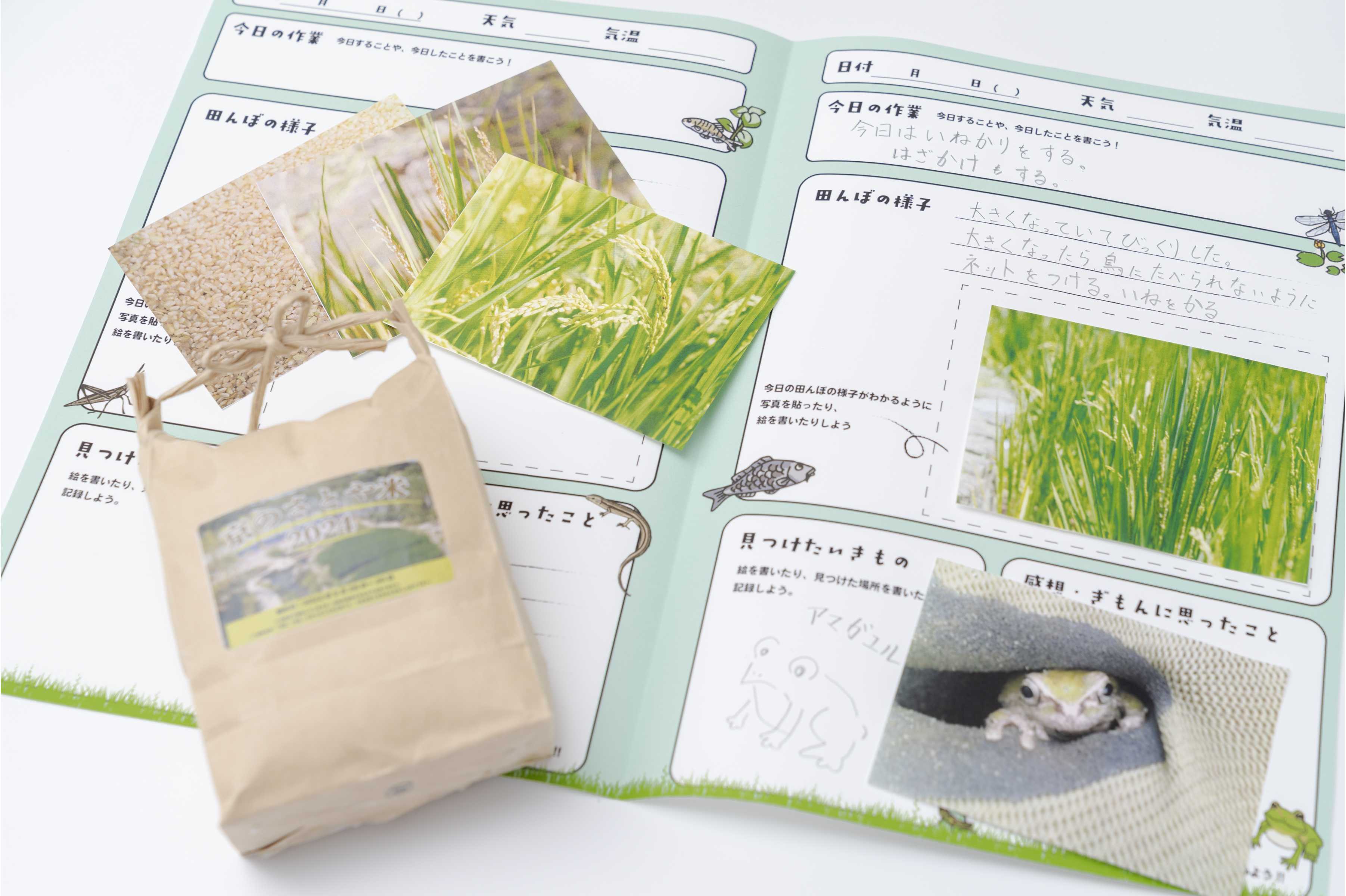 田植えから精米まで稲の成長を記録する「観察ノート」を配布