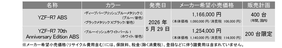 「YZF-R7 70th Anniversary Edition ABS」