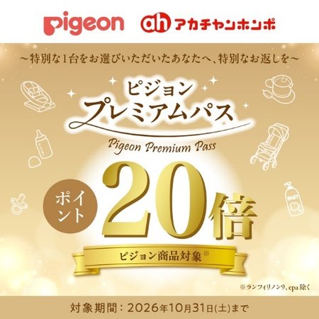 ・特典内容:期間中ピジョン商品のご購入金額に対しアカチャンホンポポイント20倍付与