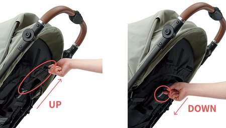 おでかけ中に赤ちゃんが寝ている時も、片手でレバーを引くだけでお好みの角度にサッと調節できるため、赤ちゃんを乗せたまま静かに寝かせてあげることが可能です。