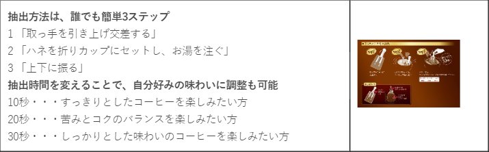 最短10秒でレギュラーコーヒーの抽出が可能な、タイムパフォーマンスに優れた次世代の簡易抽出型コーヒーです。
