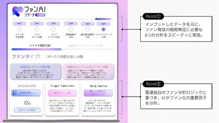 今回の「ファンAIリサーチ ブランド」では、電通が長年培ってきたファンマーケティングの知見にAIを掛け合わせることで、生活者がどのような体験を通じて企業や商品ブランドのファンになっていくのかを、よりスピーディに可視化することが可能となりました。