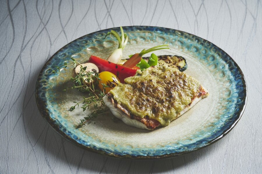 ・沖縄県産鮮魚のグリル イーチョーバーとシークワサー風味のバター添え